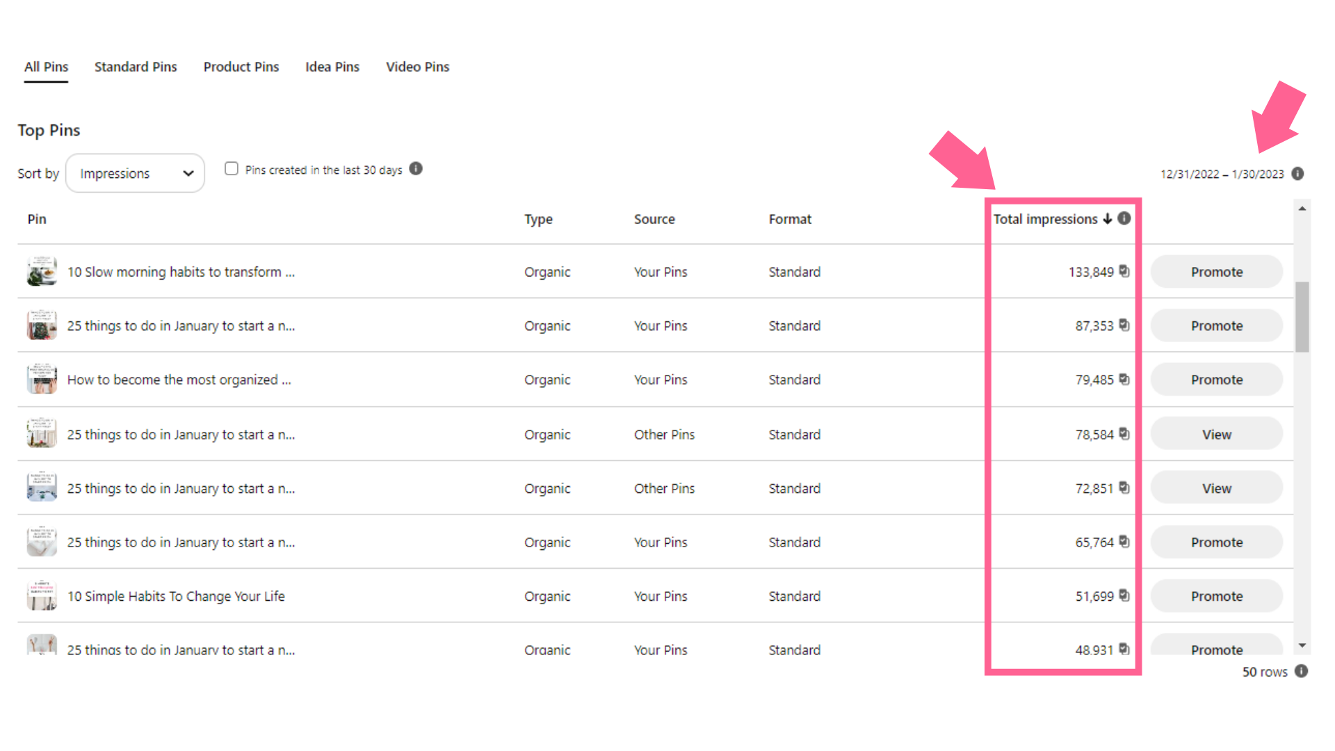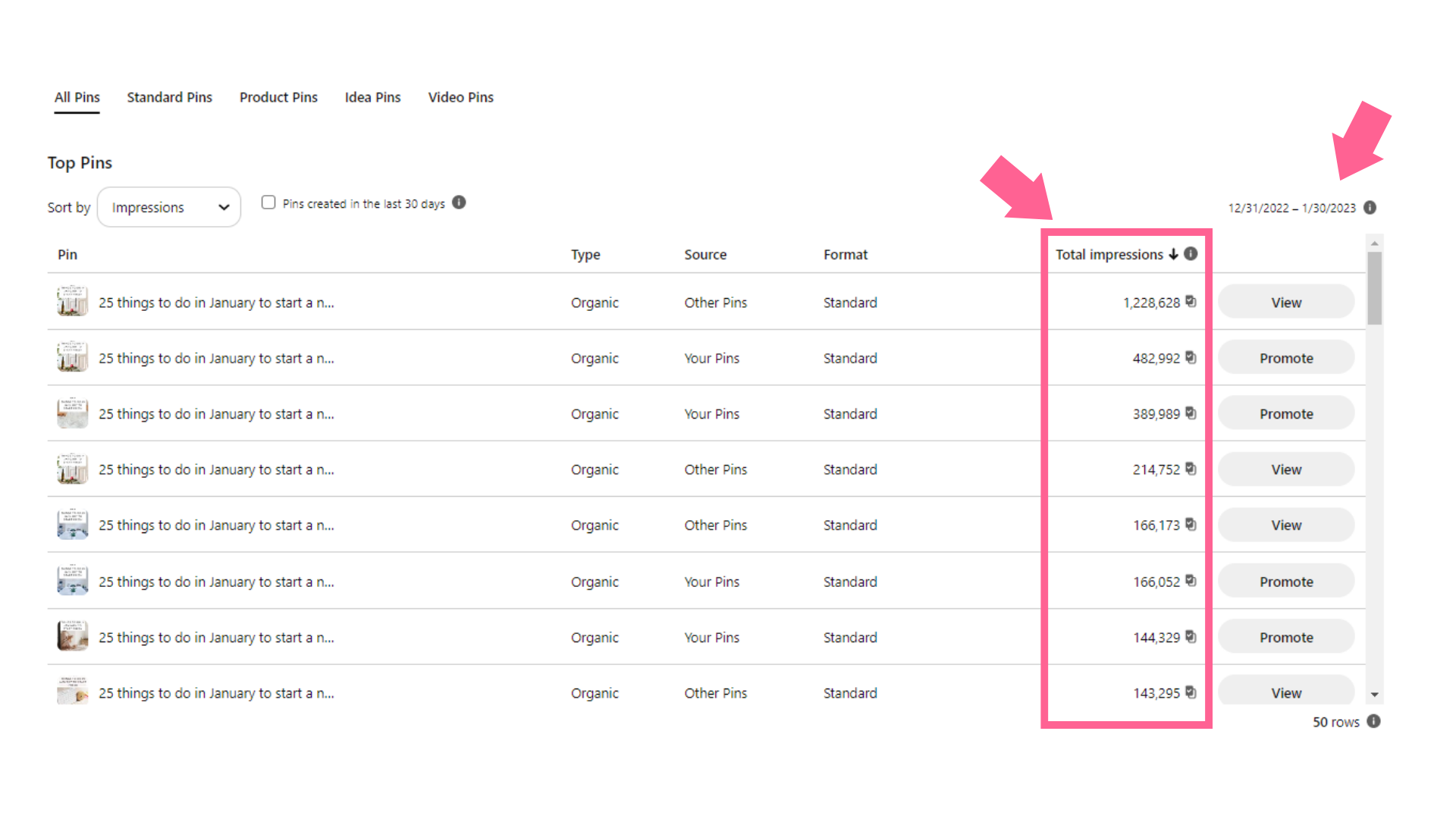 With many pins getting from +100,000 to 1,230,000 monthly impressions: