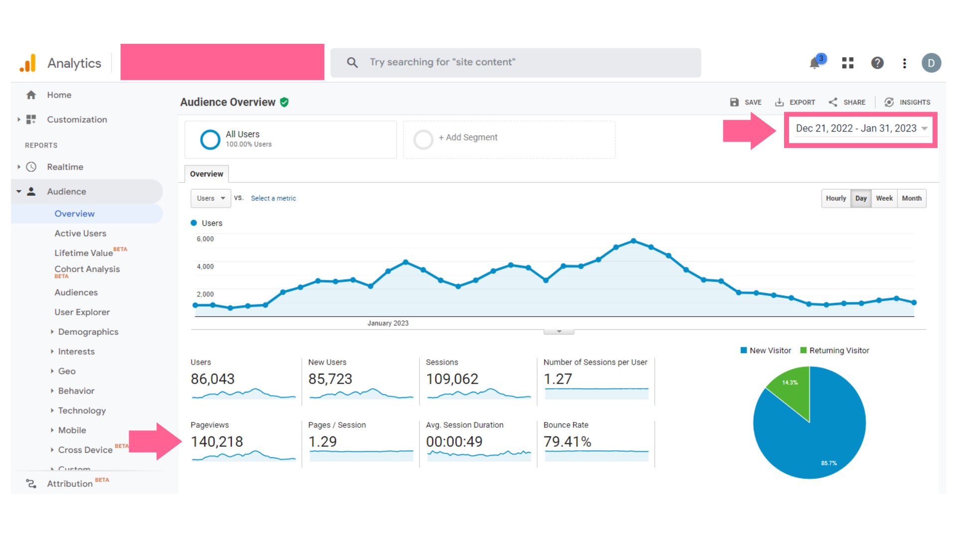 These +5,000,000 impressions generated +130,000 pageviews on my first website in January 2023 alone: